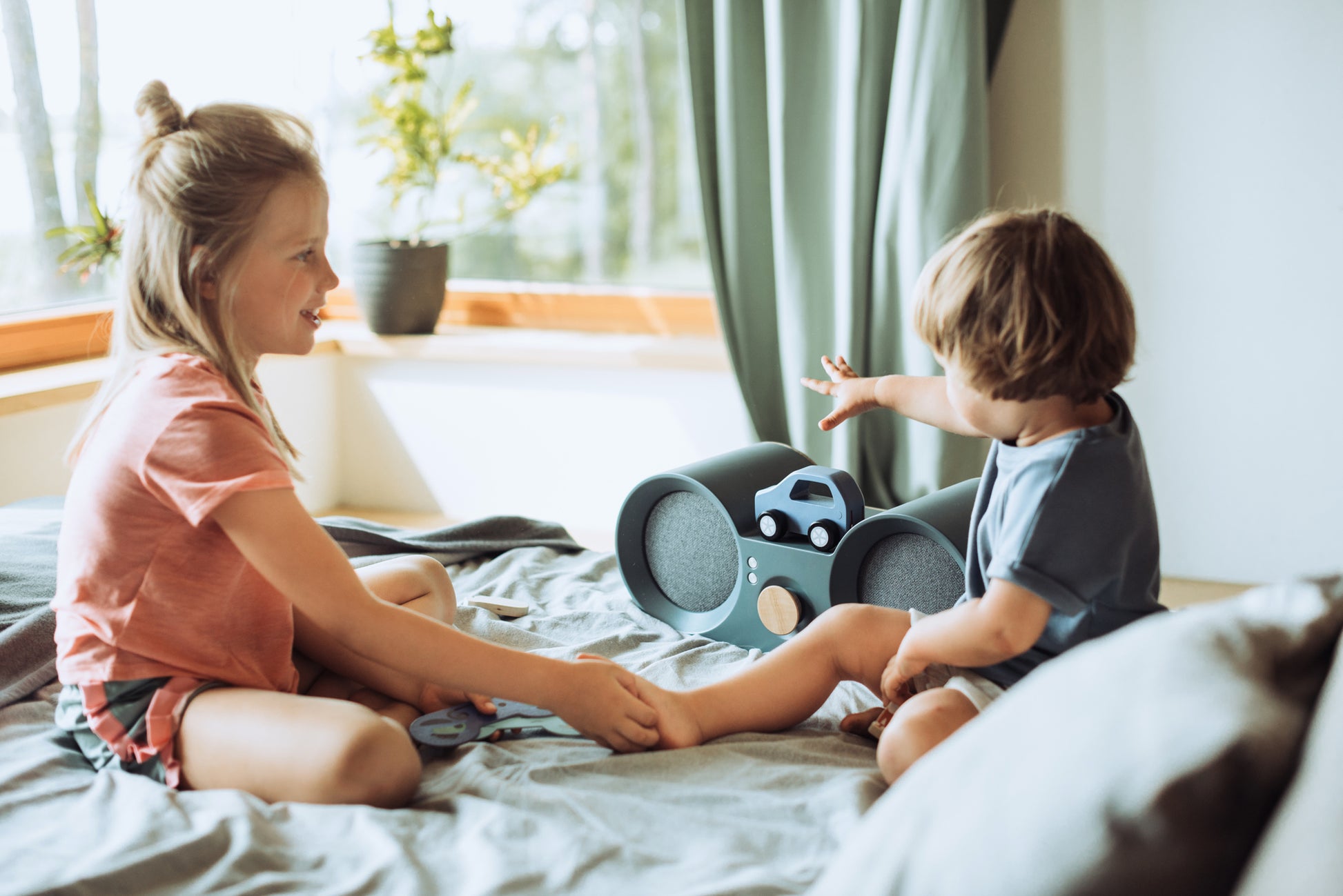 • No confusing buttons, no screen, no parental assistance needed! Kids play music by placing their own toys or Babbit interactive cards on the premium wooden home speaker.